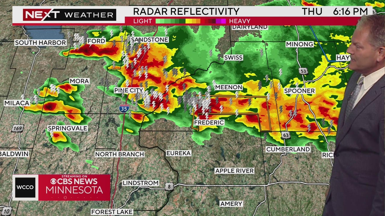 WCCO meteorologist Chris Shaffer is keeping an eye on storms moving through central Minnesota and western Wisconsin.