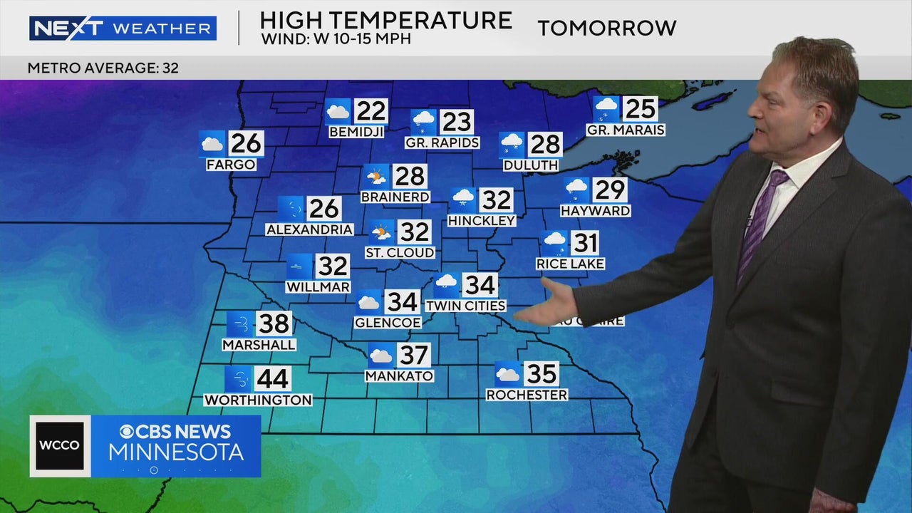 NEXT Weather meteorologist Chris Shaffer says the first of two rounds of snow will arrive in northwestern Minnesota early Tuesday before moving into central and northern areas. Temperatures are expected to be in the 20s and 30s across most of the state.