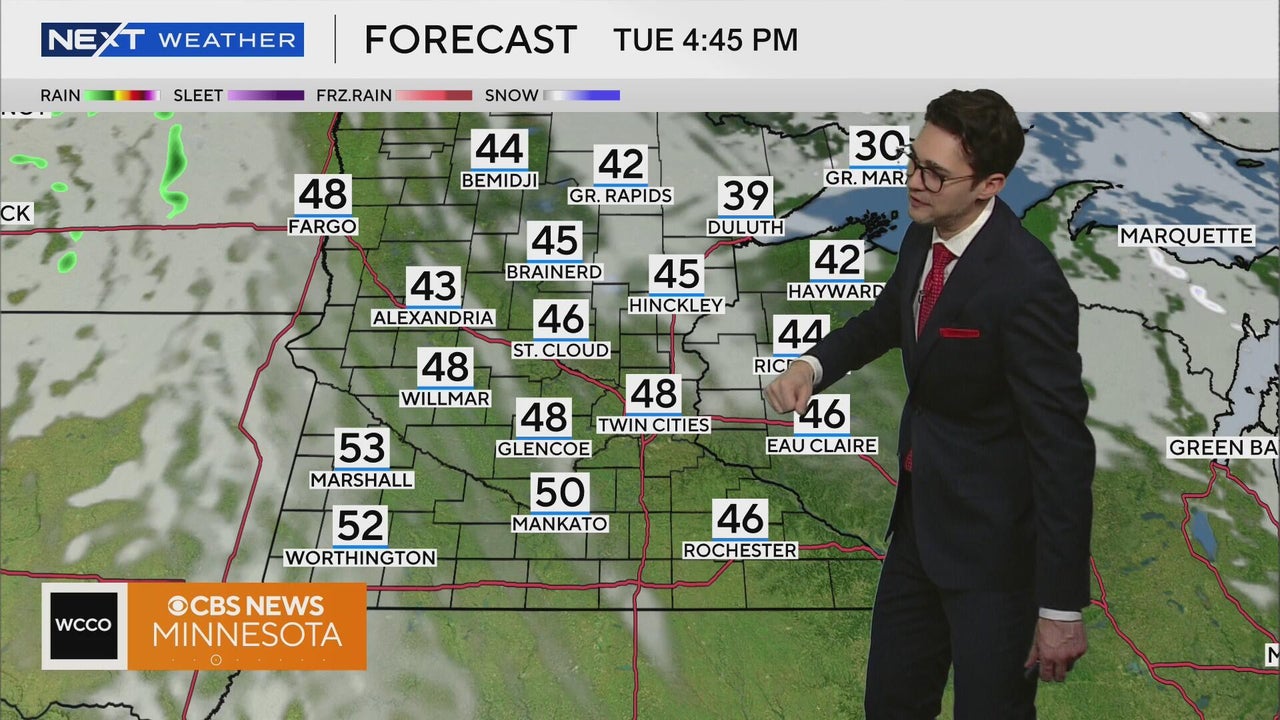 Highs will climb into the 40s and 50s across the state, with the Twin Cities topping out right around 50.