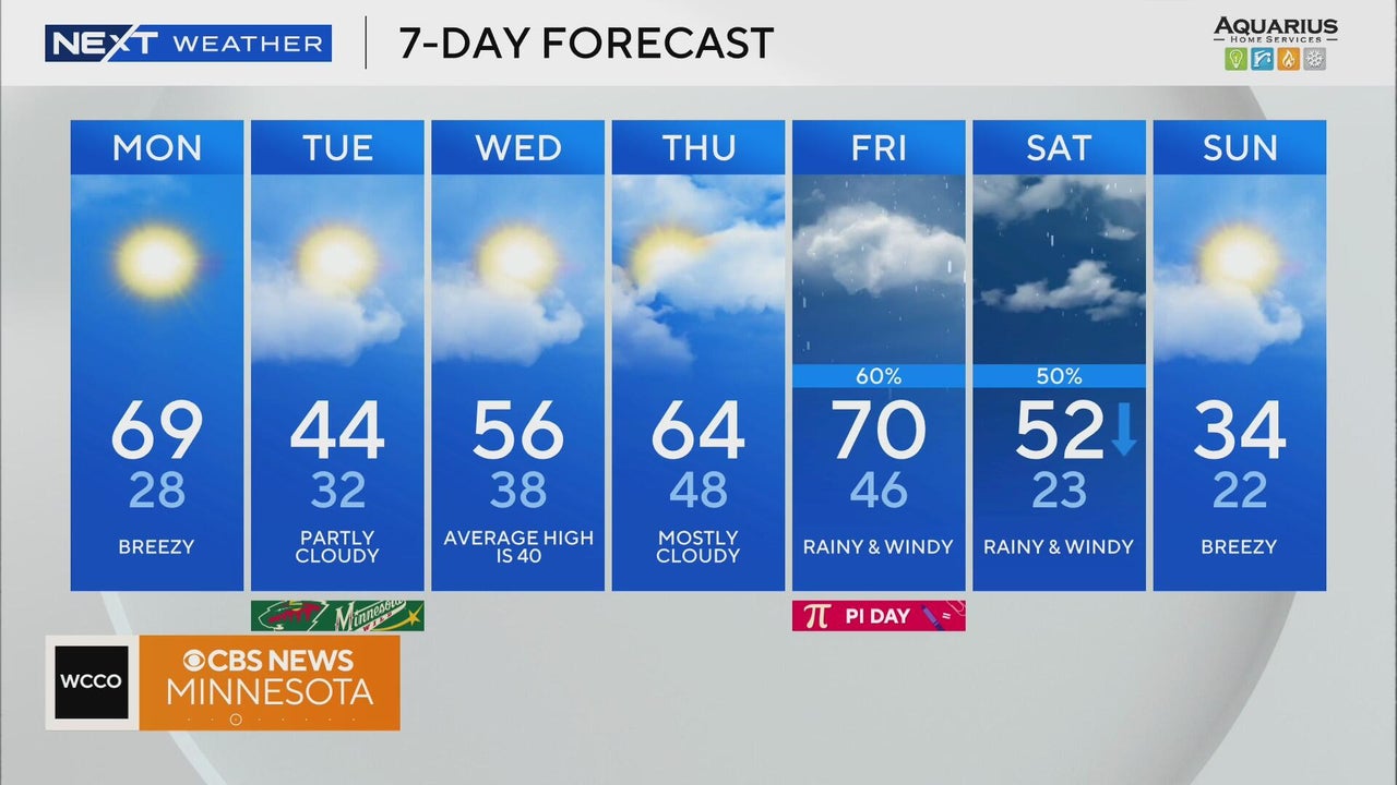Highs will be 25 to 30 degrees above normal across the state, with the Twin Cities topping out just shy of 70.
