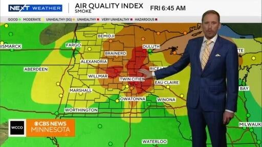 Wildfire smoke will persist across Minnesota on Friday, creating hazy sunshine as we wrap up the work week, says NEXT Weather meteorologist Adam Del Rosso.