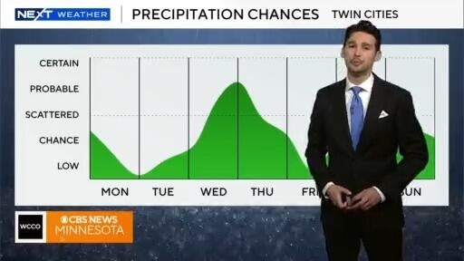 Scattered thunderstorms are possible before noon on Monday in the Twin Cities, with a small chance in the afternoon across southern Minnesota, says meteorologist Joseph Dames.
