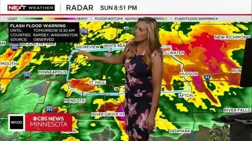 WCCO meteorologist Lisa Meadows says a flash flood warning is in effect for parts of the metro.