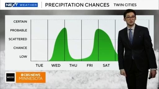 Tuesday will be cold and dry in the Twin Cities, but more snow is ahead in the forecast, says NEXT Weather Meteorologist Joseph Dames.