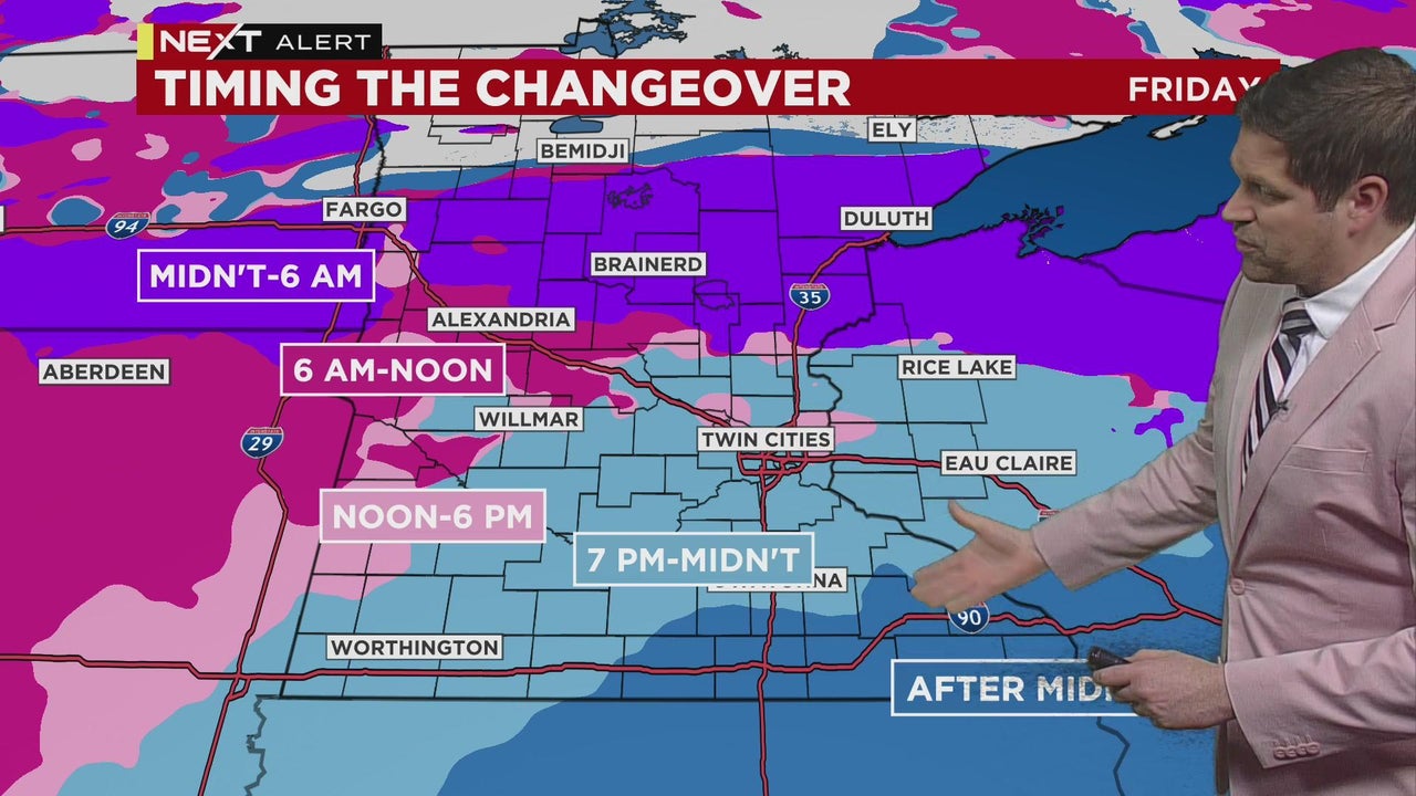 WCCO meteorologist Riley O’Connor says the next 24 hours are expected to bring all kinds of winter storms to the state.