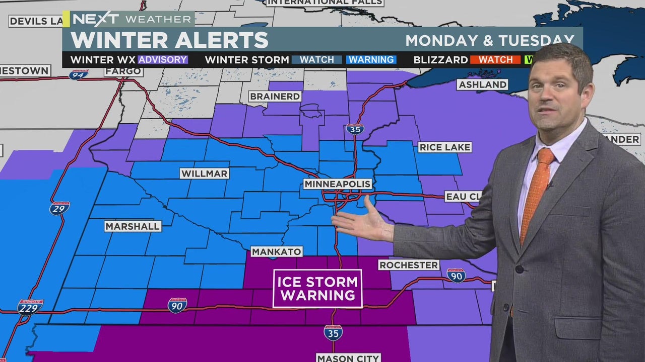WCCO meteorologist Riley O'Connor says that Monday and Tuesday could bring significant, large amounts of snow to the southern parts of the state, including the Twin Cities.