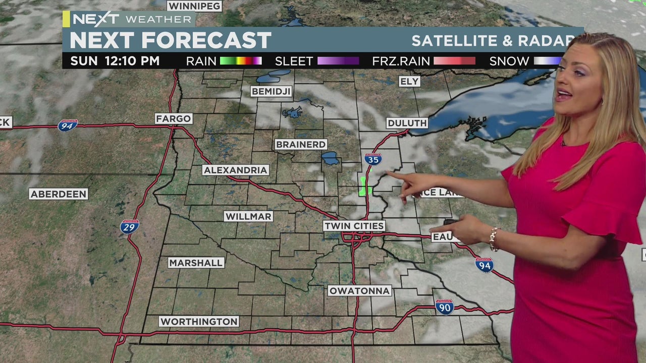 WCCO meteorologist Lisa Meadows says Sunday will be a lot like Saturday, but a weakening disturbance will be dropping across northeast MN/WI and could bring an isolated shower midday.