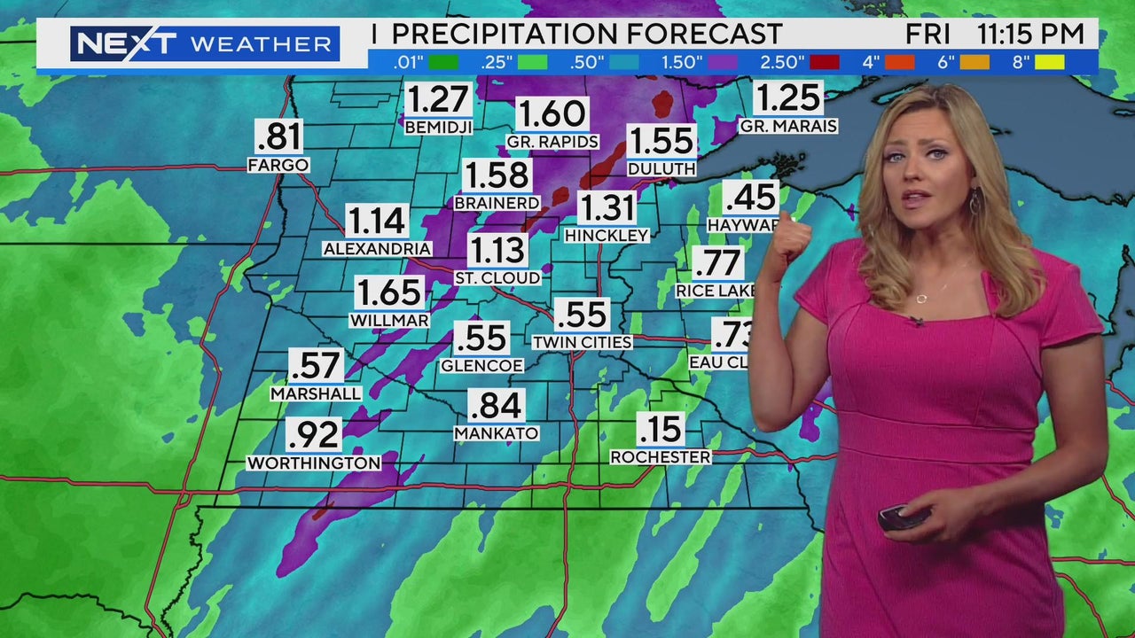 WCCO meteorologist Lisa Meadows says that the next couple days could bring more than an inch and a half of rain to parts of the state.