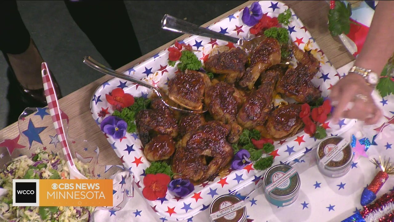 Michelle Mazzara from Luvafoodie shows off some summer BBQ chicken, along with garlic cheese olive bread and a passion fruit iced tea.