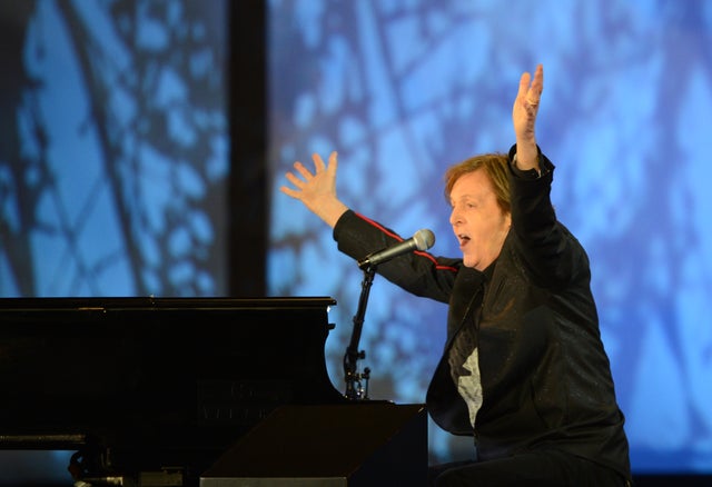 The 70-year-old legendary Beatle opened with the Beatles classic "The End" at the piano. Then he launched into "Hey Jude" while the crowd sang along to every word.