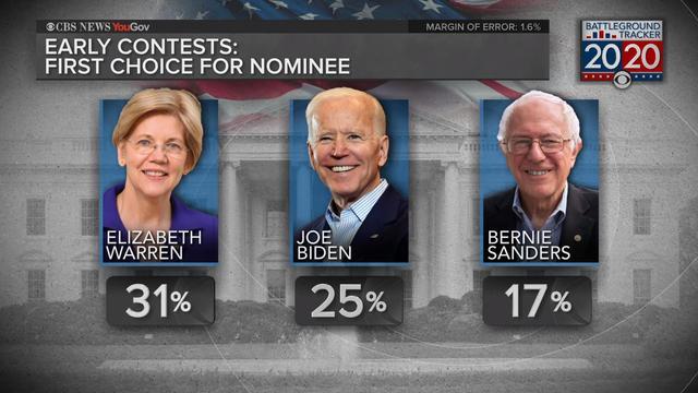 CBS News Battleground Tracker: Warren extends lead across early states, New Hampshire and draws even with Biden in Iowa