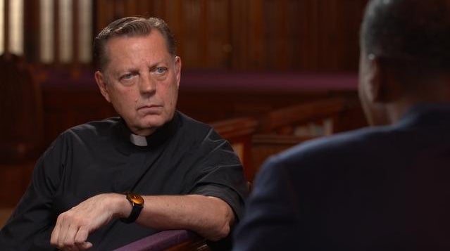 60 Minutes producer Guy Campanile talks with Fr. Michael Pfleger, pastor of St. Sabina Church on the South Side