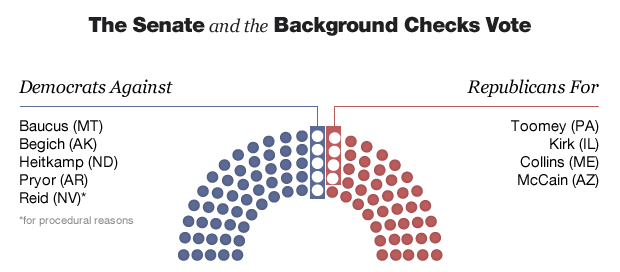 In the end, four Republicans voted in favor the Manchin-Toomey amendment, and four Democrats voted against it, excluding Senate Majority Leader Harry Reid, D-Nev., who switched his vote from yea to nay for procedural reasons.