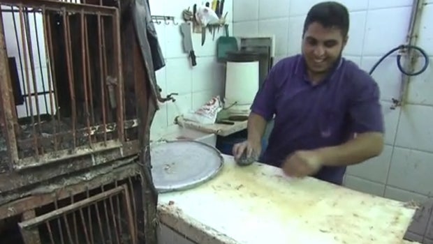 Chicken farmer Hussein Al-Suwari opened stall and sold out in two hours. He had almost no chickens because his farm was destroyed by an air strike.