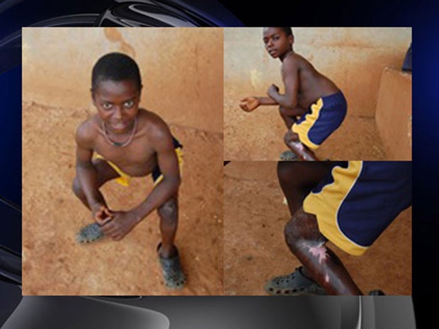 Non-profit organization Children's Burn Foundation will perform surgery on Adolf Baguma. Baguma was 7 when his aunt burned his legs with a hot banana leaf for trying to take food, CBS station KCBS in Los Angeles reported. Because the burns were not treated, his legs healed at a 90 degree angle.