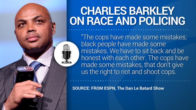 In an interview on ESPN radio's Dan Le Batard show Tuesday, Barkley said that police "have made some mistakes, that don't give us the right to riot and shoot cops." He continued that it bothers him that black people "never get mad when black people kill each other." He added that "there's a lot of blame to go around."