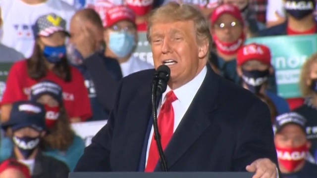 When he made the false claim about coronavirus, Mr. Trump was addressing a crowd at Toledo Express Airport in Swanton, Ohio — one of two campaign stops that day in the battleground state. The president criticized how he thinks Joe Biden would handle the pandemic and impending vaccine if he were to be elected president, claiming Biden would "shut down the country" again.