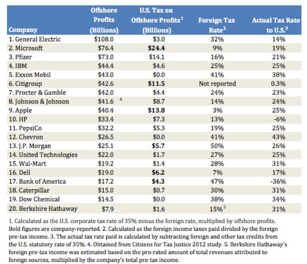 Most of the companies did not provide estimates of how much in taxes would be liable if they repatriated their profits. According to the site, the top ten companies account for 68 percent of offshore profits. Some of the high tech companies -- Microsoft, Apple, and Dell -- kept their actual foreign tax rates well under 10 percent.
