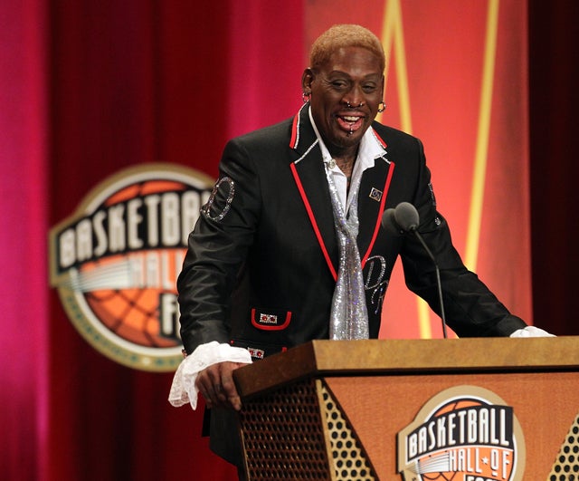 Rodman, 50, is no stranger to legal trouble or sensational headlines. The player known for his multiple body piercings, flamboyant clothes and ever-changing hair color has been arrested for everything from driving drunk to assaulting his ex-fiancee to hosting loud parties. He was married to Carmen Electra, dated Madonna and appeared on "Celebrity Apprentice." He famously wore a wedding dress to promote his autobiography.