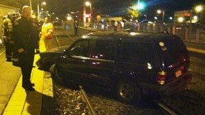 Officers rushed to Beverly Depot train station, which is a half-mile from where the vehicle turned onto the tracks. When officers arrived, they found the SUV had crashed into a wall, and was stuck on the tracks, reports the station.