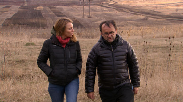 The village is virtually unchanged since the Nazis stormed through here. Father Desbois' team had gone ahead of us, searching for eyewitnesses to a 70-year-old crime. They were led to an 85-year-old named Gheorghe, still working in this vineyard. Father Desbois told us the first question they ask is always the same...