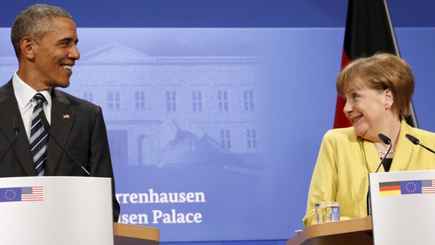 Obama, at a news conference with German Chancellor Angela Merkel, said the leaders had discussed economic and security issues facing Europe. He credited Germany for being a strong partner on efforts to counter the Islamic State of Iraq and Syria (ISIS) and to provide humanitarian relief to refugees fleeing the fighting in Syria.