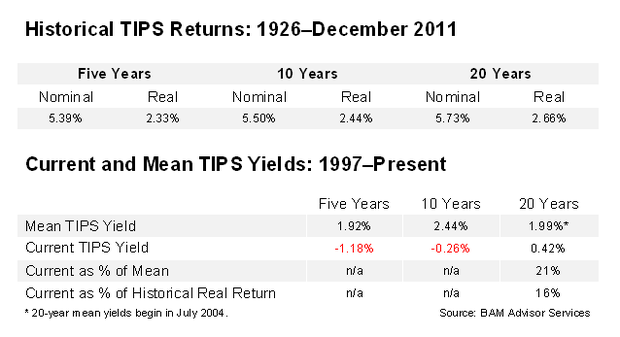 As always, one last point to remember is that one of the advantages of TIPS over nominal bonds is that you can take maturity risk with TIPS and earn the term premium without taking inflation risk. Thus, while longer-term TIPS have more interim price risk -- which for some investors could be too much volatility to stomach -- there's no risk of loss if you hold to maturity.