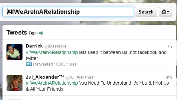"#IfWeAreInARelationship lets keep it between us..not facebook and twitter,"[sic] tweeted @iDeeplove. Since this morning, this statement has been re-tweeted over 10,000 times.