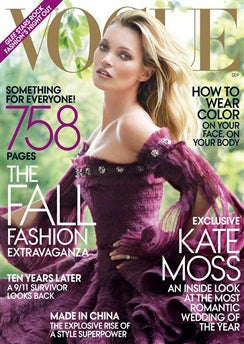 The September issue of Vogue magazine goes inside the supermodel's Julywedding to The Kills musician Jamie Hince. Moss says she was charmed by the extravagance of gypsy weddings with wedding gowns that are like "blinging butterflies times ten."