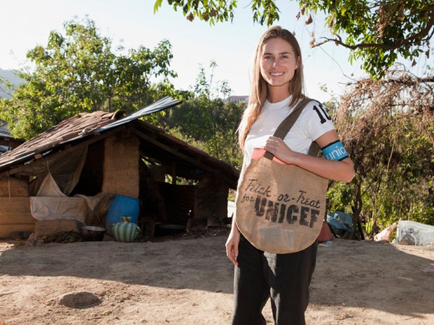 Bush Lauren remembers carrying the paper box when she was a kid in Houston. "I feel nostalgic for it. I trick-or-treated for candy and UNICEF," she says.