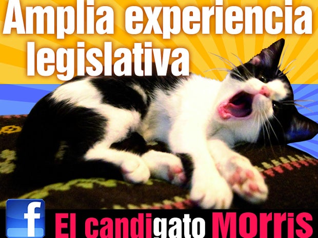 Morris' cuteness, the clever campaign and promises to donate money collected from the sales of campaign stickers and T-shirts to an animal shelter has attracted cat lovers, but Camacho said most of his supporters are citizens tired of corrupt politicians and fraudulent elections.