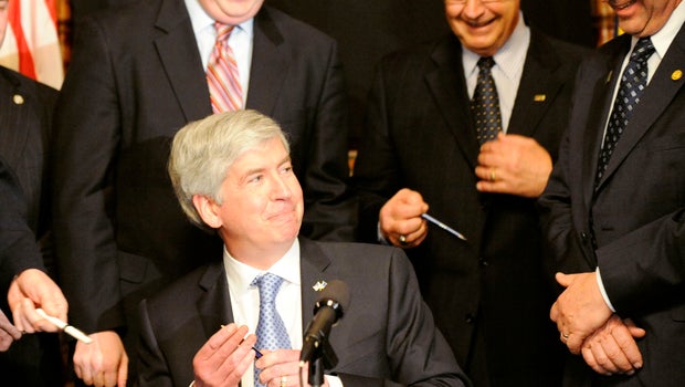 "It takes every decision in a city or school district and puts it in the hands of the manager, from when the streets get plowed to who plows them and how much they are paid," said Mark Gaffney, president of the Michigan State AFL-CIO. "This is a takeover by the right wing and it's an assault on democracy like I've never seen."
