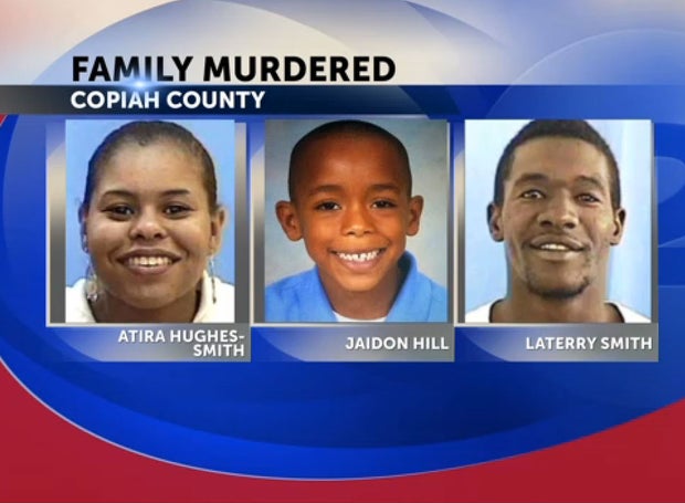 Coroner Ellis Stuart reportedly said the bodies of 7-year-old Jaidon Hill, 30-year-old Atira Hill-Smith, and 34-year-old Laterry Smith, were found not far from where investigators recovered their burned car Saturday morning in a remote area of Jackson, Miss.