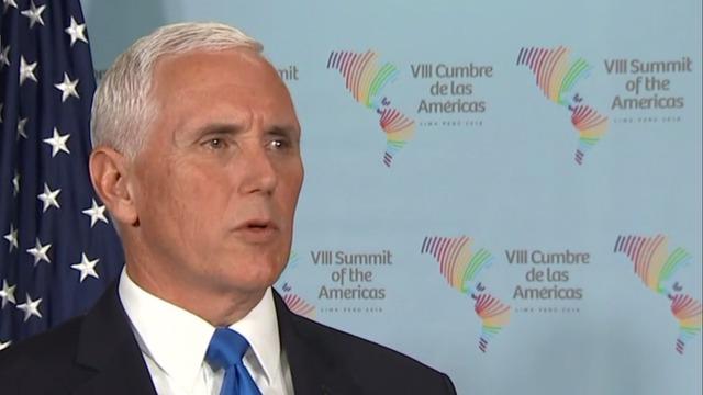 "Our message to Russia is, you're on the wrong side of history," Pence, who is in Peru in President Trump's place this weekend, told reporters. "It's time for Russia to get the message that President Trump delivered last night. That you're known by the company you keep."