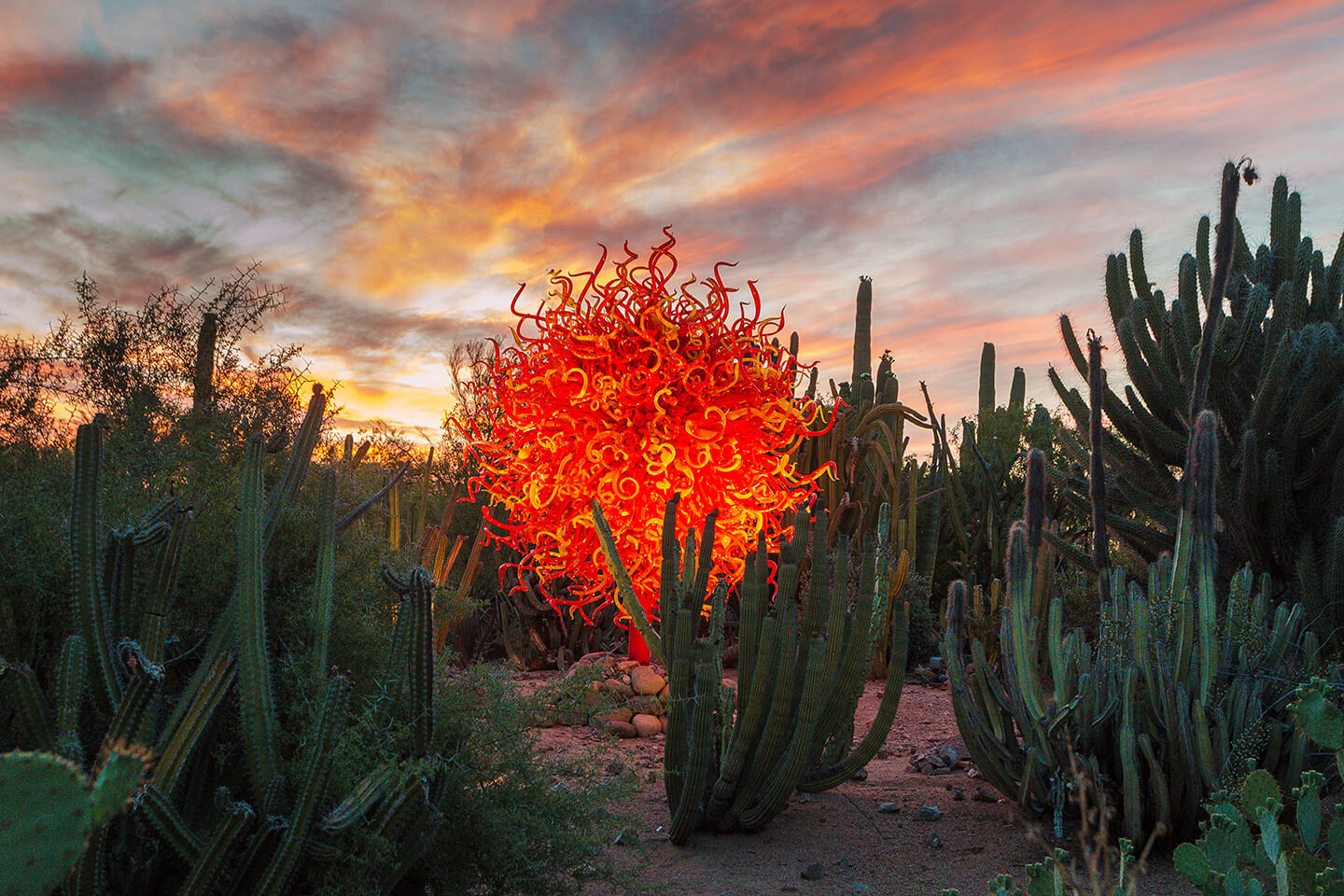 The Phoenix Desert Botanical Garden, teeming with desert plants, is hosting Dale Chihuly's "The Nature of Glass" through May 31. Chihuly's dazzling glass sculptures have been installed throughout the garden, even hanging from the roof. Admission is $15 (students, $7.50 with ID; $5 ages 3-12). Reservations at 480-481-8188.