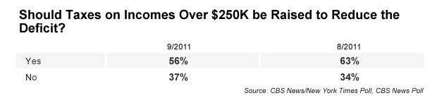 More recently, majorities have said that taxes for households with incomes of $250,000 or more should be raised in order to lower the nation's budget deficit.