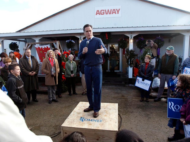 CONWAY, N.H. - After a day in northern New Hampshire that included sprinting up streets to knock on doors, pumping gas for his 45- foot-long bus and buying a Christmas gift for his wife, Mitt Romney returned on Thursday to the campaign setting where he has felt most at home -- a town hall meeting.