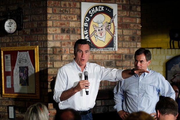 Mourdock called Romney "the ultimate team player," recalling how Romney immediately endorsed Arizona Sen. John McCain after Romney ended his own presidential bid in 2008. "Politics is all about being a team. This is not a solo sport. And for that purpose alone, governor, thank you so much for coming here and supporting our candidacy today," Mourdock told a crowd of about 100 people at Stepto's BBQ Shack.
