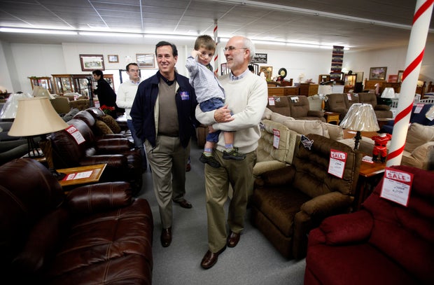 Meanwhile, the former Pennsylvania senator said, Romney has not been consistently conservative. He cited the ex-Massachusetts governor's views on overhauling health care and a "cap and trade" proposal aimed at reducing greenhouse gases blamed for global warming. "There's a whole laundry list of issues where Mitt's been all over the map," he said.