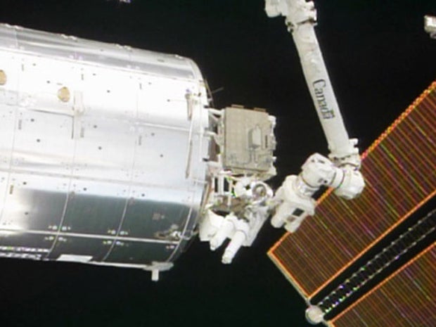 The astronauts also repositioned a camera sunshade that had slipped out of position, removed no-longer-needed insulation and tightened up a loose fitting that is part of a coolant system repair station. Most of the spacewalk tasks were unfinished items left over from earlier spacewalks that NASA is trying to wrap up before the shuttle fleet is retired later this year.