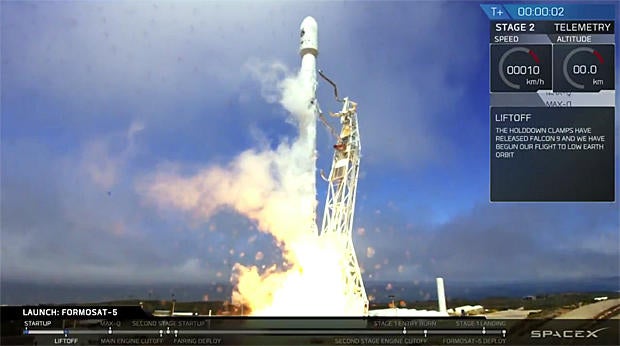 Formosat 5 is a half-ton satellite built by Taiwan's National Space Organization, of NSPO, as a demonstration of the country's aerospace manufacturing prowess. One of the lightest payloads yet launched by a Falcon 9, the satellite is equipped with a camera capable of 6.6-foot resolution in black-and-white imagery and 13-foot resolution in color.