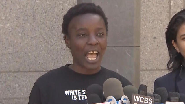 A National Park service spokesman told CBS New York's Reena Roy Thursday that Okoumou used a ledge above a doorway on the public observation deck to hoist herself onto base of the monument.