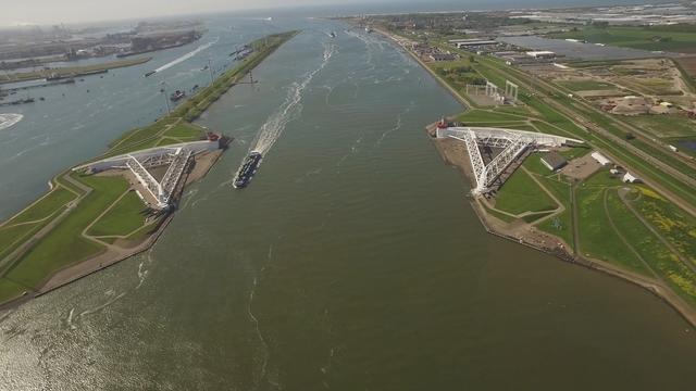 The gates guard one of the largest ports in the world and most of the Dutch population. They don't have hurricanes like we do, but ferocious storms with hurricane-force winds can blow in from the North Sea and push in huge storm surges. When that happens, the two arms seal off the Rhine River and Rotterdam. The gates took six years to build and cost $500 million.
