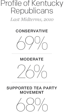 There are plenty of conservatives in Kentucky and they certainly dominate the Republican party, so plenty of voters could get involved. In the last midterms, 2010, 69 percent of Bluegrass Republicans called themselves conservatives. And 68 percent supported the Tea Party.