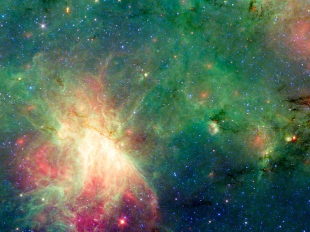 In reality, the dark cloud called M17 SWex, is believed to be forming stars at a very rapid clip. NASA says that the clouds and gas are now passing though the Sagittarius spiral arm of the Milky Way, creating a galactic "domino effect" along the way. "Over time, this area will flare up like the bright M17 nebula, glowing in the light of young massive stars. An older burst of star formation blew the bubble seen in the region to the far left, called M17 EB," NASA said in a release.