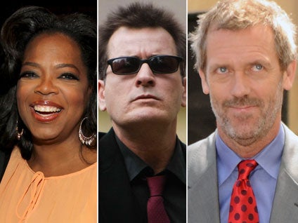 Oprah Winfrey, Charlie Sheen and Hugh Laurie take the lead spots among Hollywood's highest paid on television.
