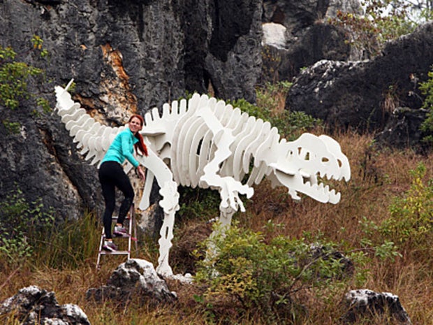 Both appeared to tackle this with ease, but the next task, forming a dinosaur with interlockcing wooden pieces, challenged them as well all the other racing teams.