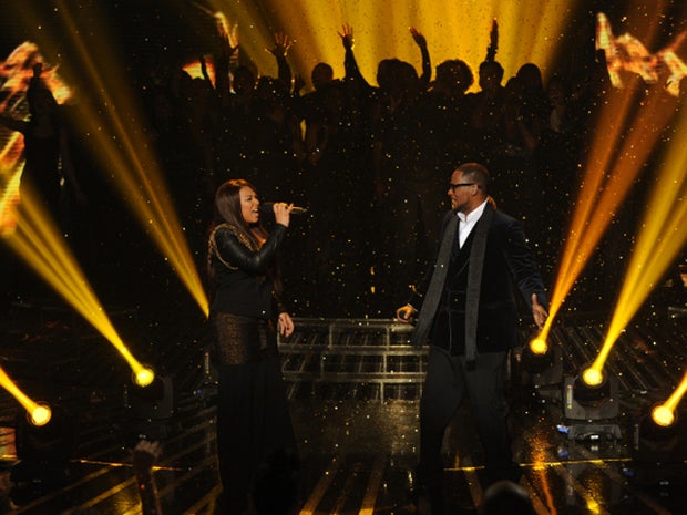 Who could possibly have been paired with Melanie Amaro? Yes, a suitably family-friendly performer: R. Kelly. For the song was his "I Believe I Can Fly." Amaro, unlike the other two, betrayed neither nerves nor notes.