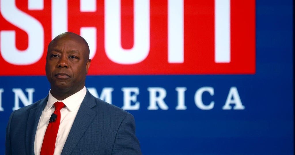 Scott, the junior senator from South Carolina, very rarely criticizes the former president in public. Instead, he has focused on his vision for the nation, notably more upbeat than the darker grievance-laden pitch often voiced by former President Trump. Trump has more name recognition than any candidate running or considering a bid for the presidency, but Scott thinks there's an opening for a candidate like him.