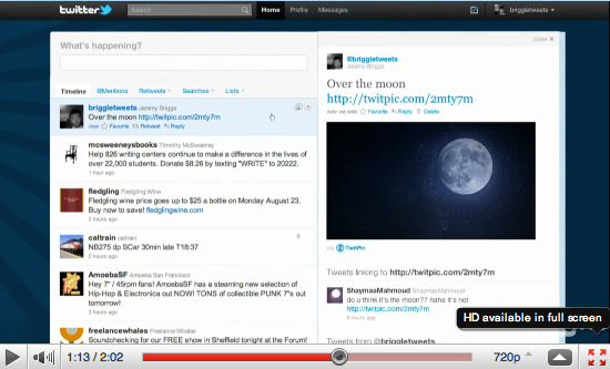 This week, Twitter itself trended when it introduced a new, re-engineered Twitter.com website design. There will be the standard user timeline but underneath each Tweet is additional information and embedded media (videos/photos). If you click on an individual Tweet, a details pane will slide to the right to reveal this extra content.